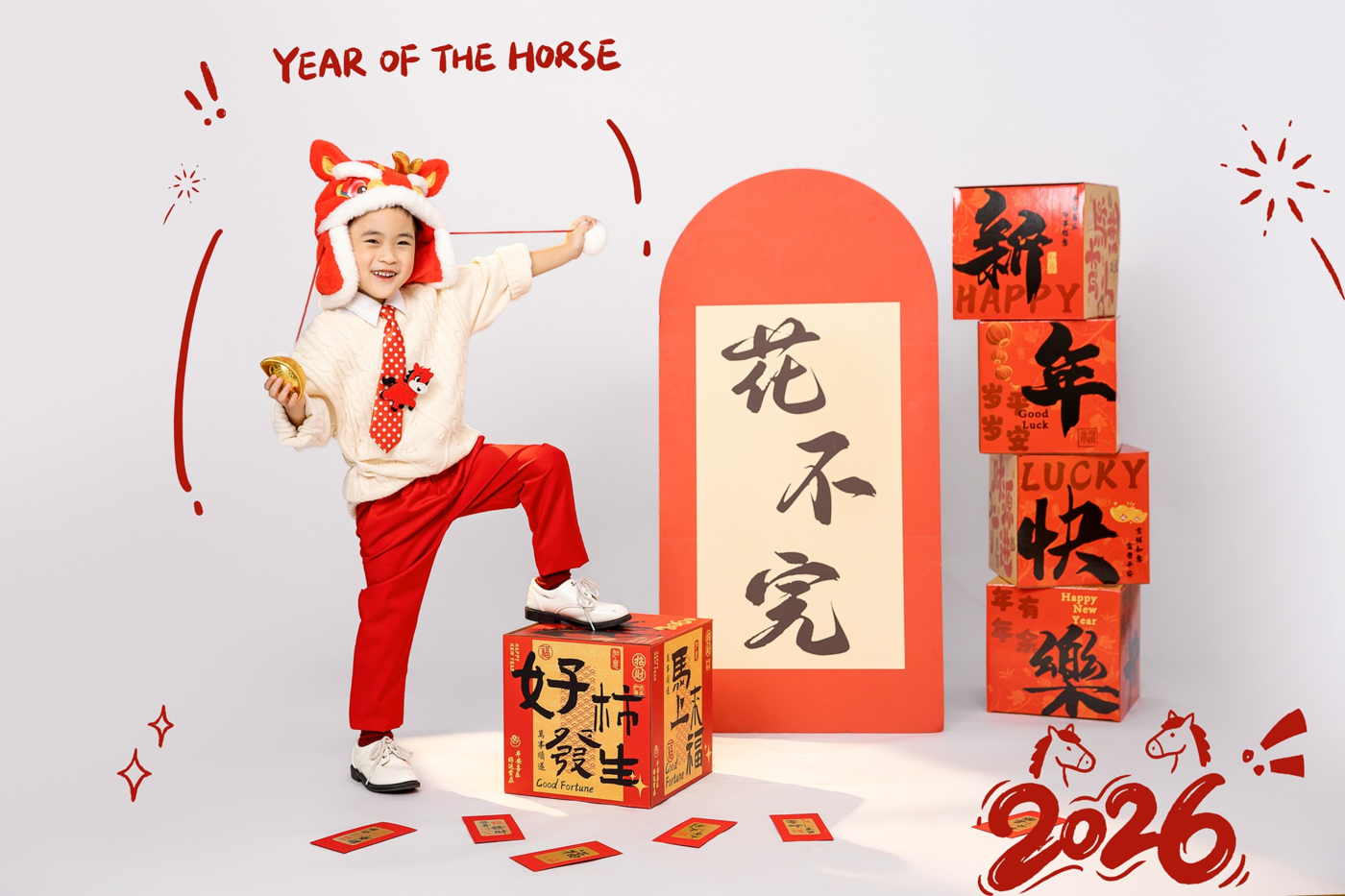 满怀希红绒虎头帽 + 喜庆春联,直接把 2026 马年的 “福运氛围” 拉满!宝贝手托腮的软萌模样,配着 “平安喜乐”“五福临门” 的吉语,每一帧都是新年限定的治愈年味~把这份 “马到功成” 的好兆头,锁进宝贝的新年相册里吧~望就会所向披靡。[更多…]